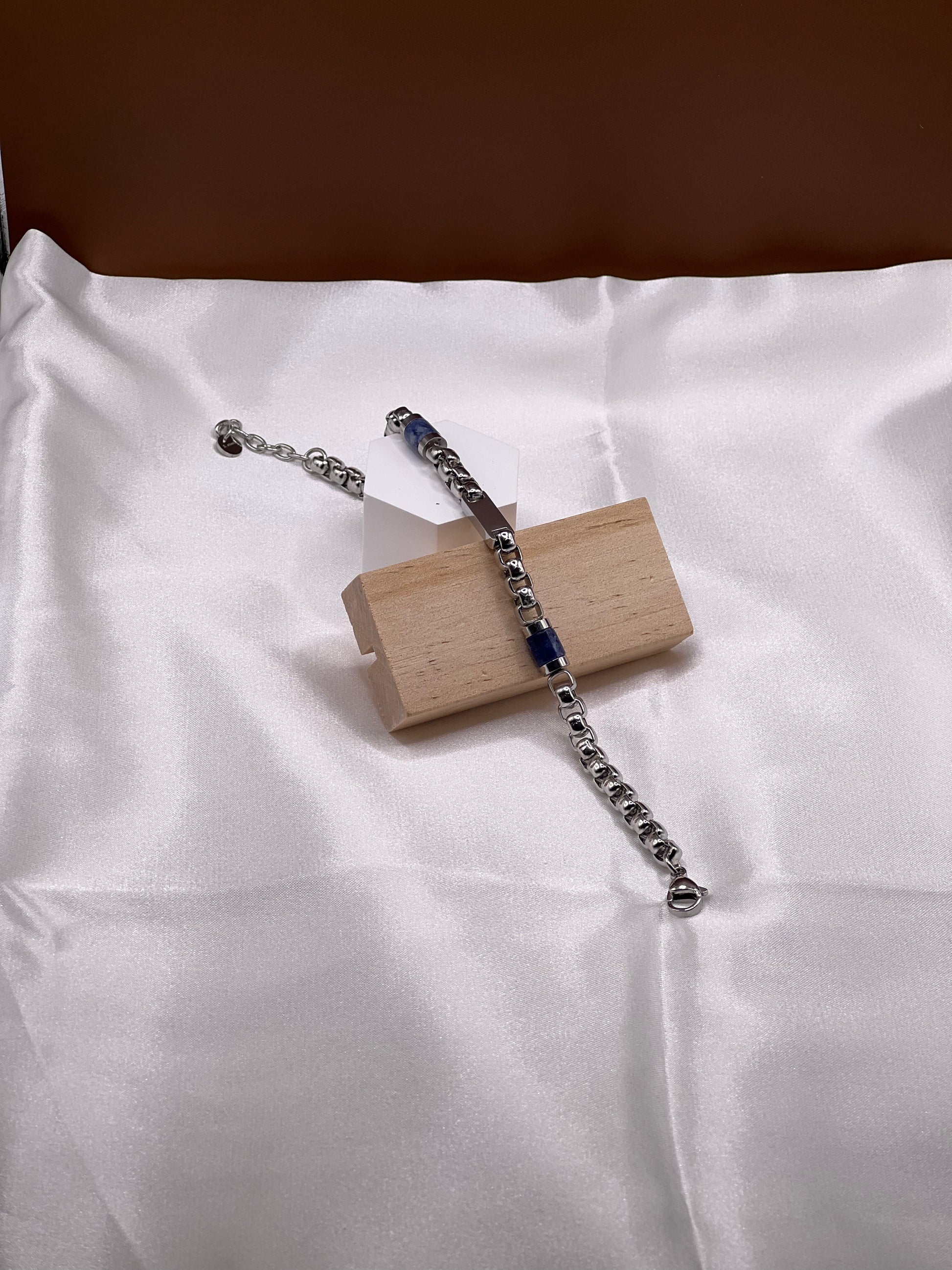 Ce bracelet en acier inoxydable avec pierres naturelles allie confort et style, s’adaptant aussi bien aux tenues décontractées qu’aux looks plus habillés.